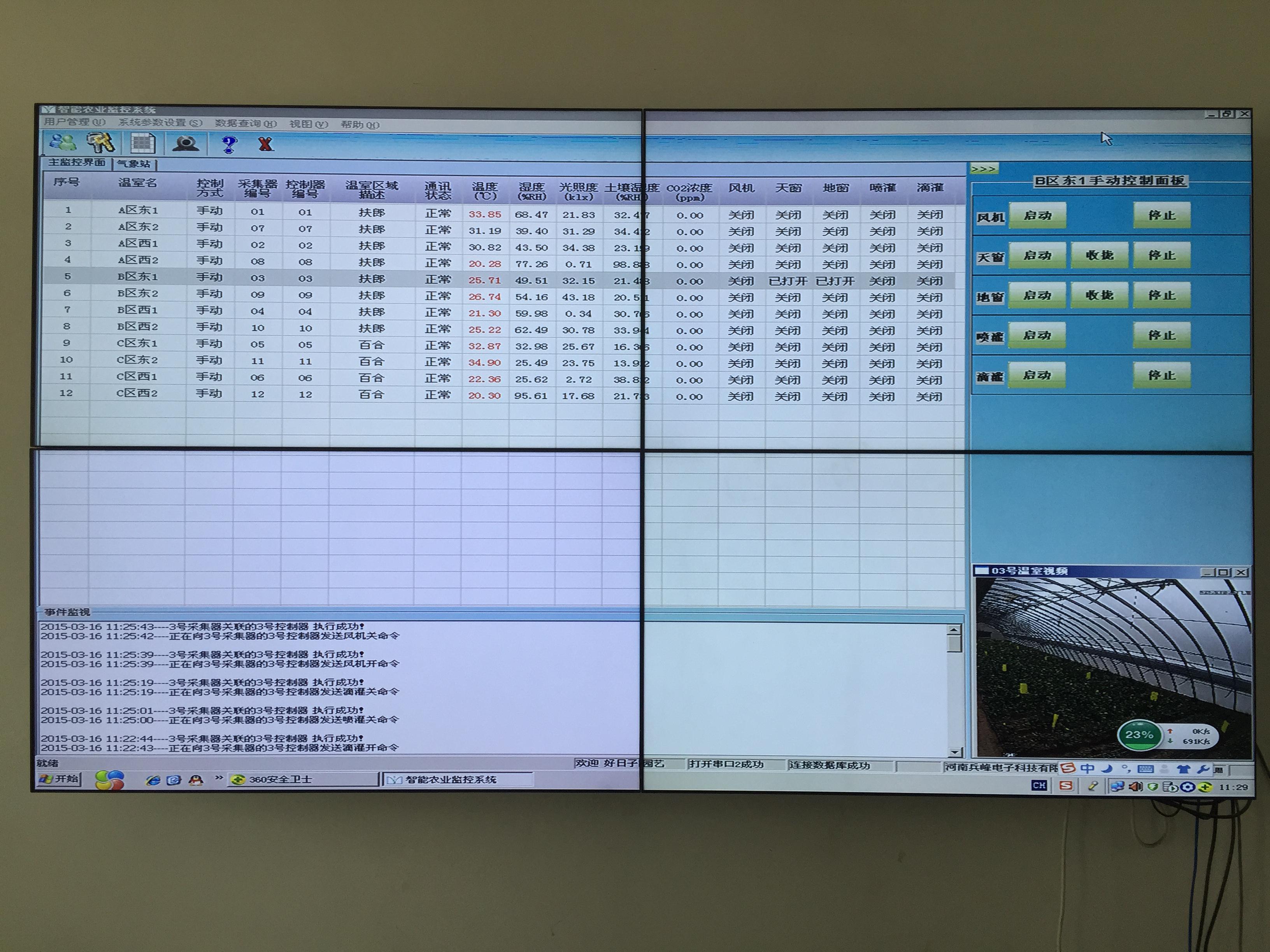 溫室種植的作物多為高附加值產品,需要精細化管理。傳統的人工管理方式不但費時費力,還很難實現精準的控制,而智能溫室管理系統可有效解決這一問題。其核心任務是準確實時地采集溫室的作物生長環境(如空氣溫度、空氣濕度、土壤濕度、光照強度、二氧化碳濃度等),然后根據作物生長需要對農業設施(如風機、濕簾、滴灌、噴灌、天窗等)實現手動或自動控制,從而保證溫室的最佳生長環境,以提高產品的質量和產量。通過攝像頭還可隨時遠程查看現場視頻信號。