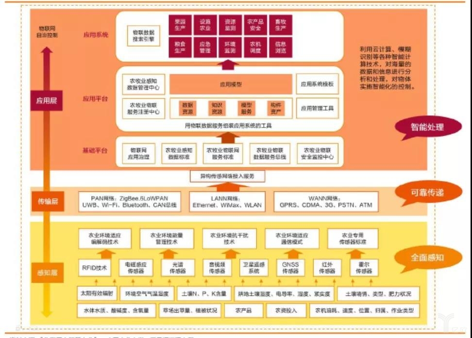 物(wu)(wu)聯(lian)網——海(hai)量(liang)農(nong)業(ye)數(shu)(shu)據(ju)實時獲取,奠定農(nong)業(ye)數(shu)(shu)字(zi)化(hua)基礎,農(nong)業(ye)物(wu)(wu)聯(lian)網是(shi)物(wu)(wu)聯(lian)網的重(zhong)(zhong)要應用領(ling)域,是(shi)數(shu)(shu)字(zi)農(nong)業(ye)中數(shu)(shu)據(ju)的主要來源。農(nong)業(ye)物(wu)(wu)聯(lian)網已(yi)被(bei)歐洲列(lie)為物(wu)(wu)聯(lian)網18 個重(zhong)(zhong)要發展方向之一(yi),同時也是(shi)我(wo)國物(wu)(wu)聯(lian)網9大領(ling)域重(zhong)(zhong)點示范(fan)工程(cheng)之一(yi)。