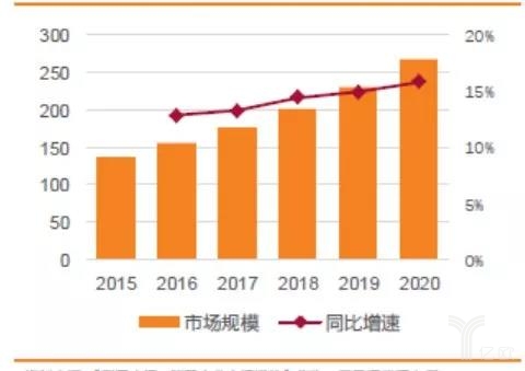 智慧農(nong)業市場規模(mo)預測(ce)(2015-2020年,億美元,%)